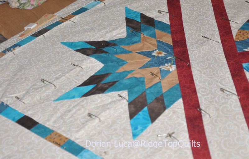 It's now sandwhiched and pinned, ready to quilt.